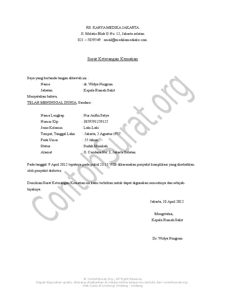 Jika warga yang meninggal di rumah sakit. Terkadang, untuk pengurusan pemakaman kita membutuhkan surat keterangan kematian dan biasanya surat yang digunakan untuk pemakaman ini dikeluarkan oleh dokter di rumah sakit, rt atau rw setempat atau bisa dari desa. Winata bin enan salwi tempat tanggal lahir umur. Kali ini saya ingin mencoba membuat contoh surat keterangan kematian yang simpel tetapi tanpa mengesampingkan format yang utama didalamnya. The collection that consisting of chosen picture and the best among others.